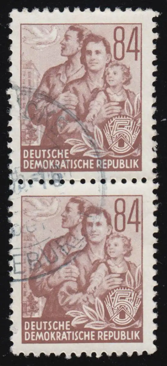379 Plan quinquennal 84 Pf. Offset en paire verticale, vraiment en demande