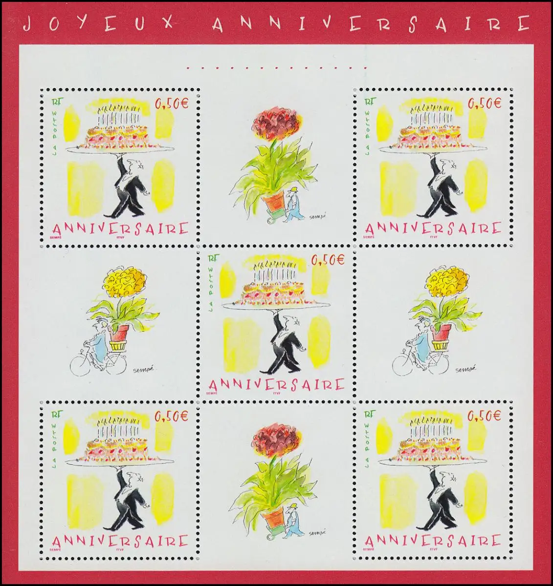 3833 Marque de salutation Kservner apporte gâteau d'anniversaire - Petit arc I avec 5 timbres **