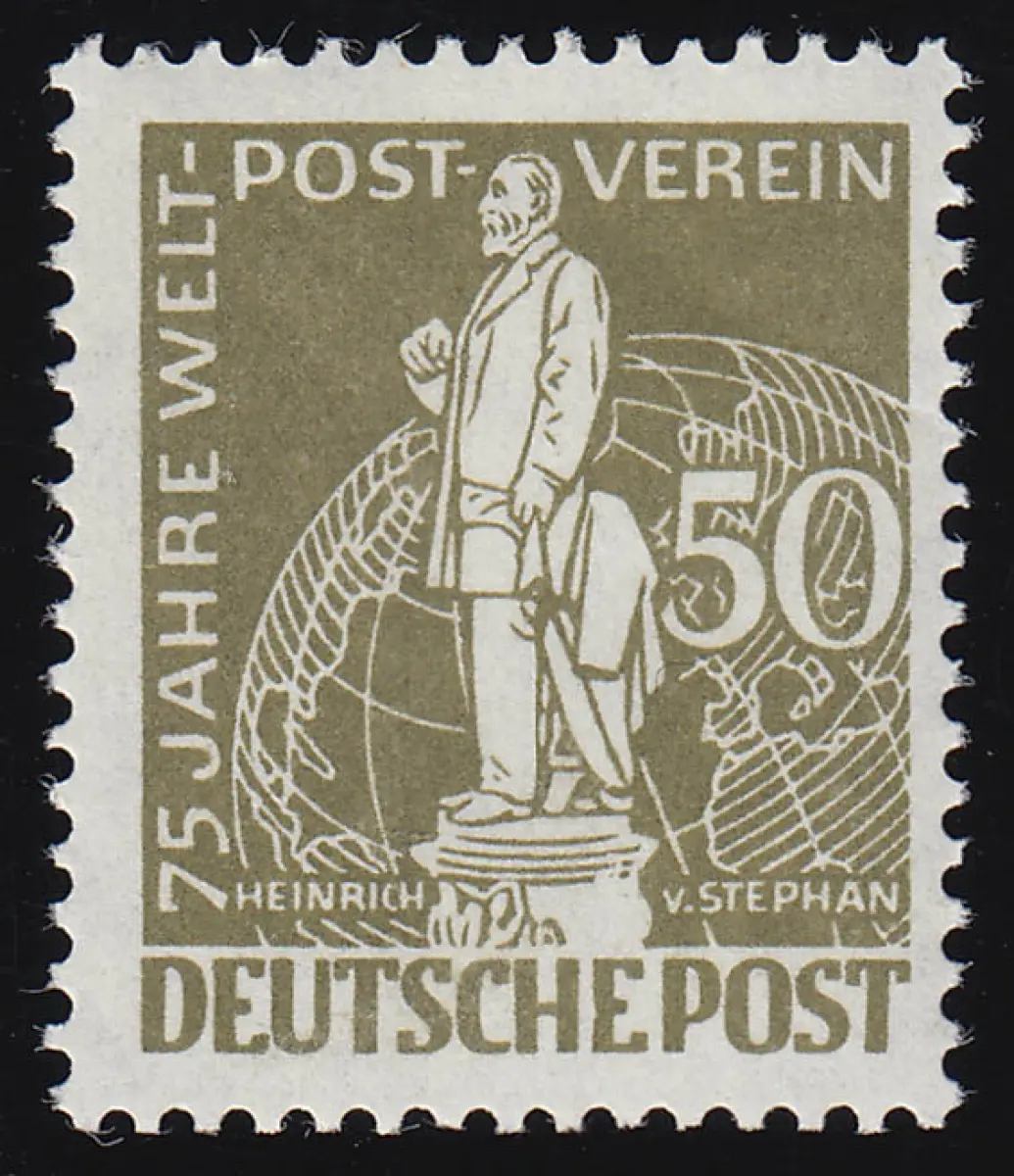 38I Stephan 50 Pf mit Plattenfehler Sockellinien rechts gebrochen, postfrisch **