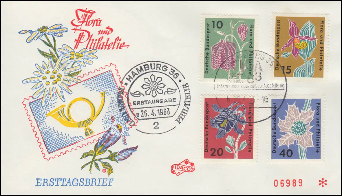 401-404 Exposition Flora et Philatelie 1963: ensemble sur FIDACOS-FDC ESSt HAMBURG