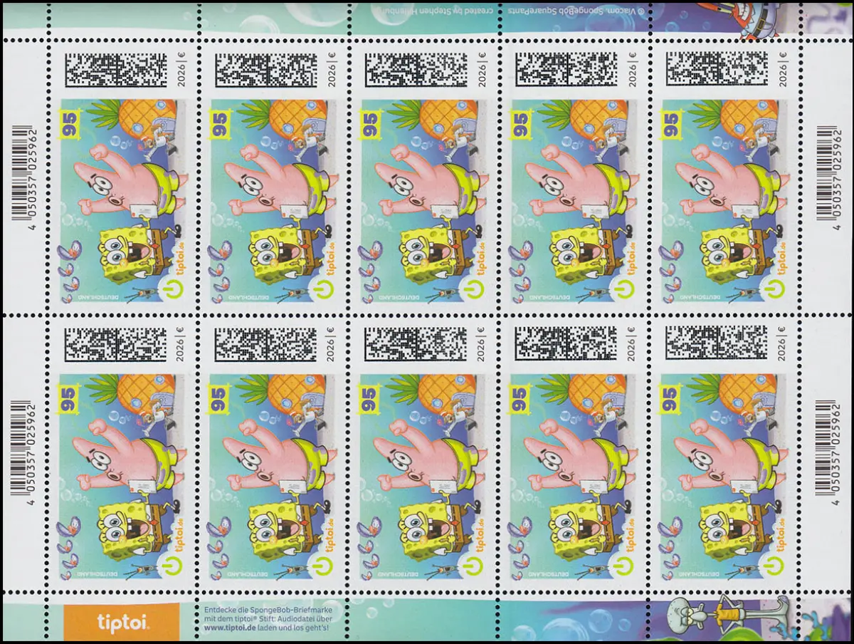 3958 Sponge Bob Schwammkopf, 10er-Bogen, postfrisch **