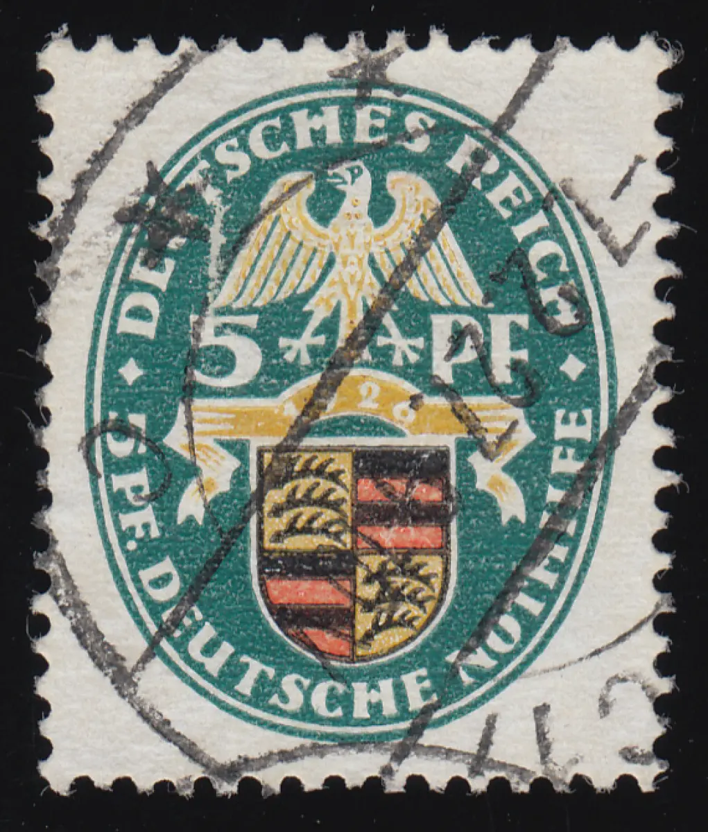 398Y Nothilfe Wappen Württemberg 5+5 Pf, gestempelt O