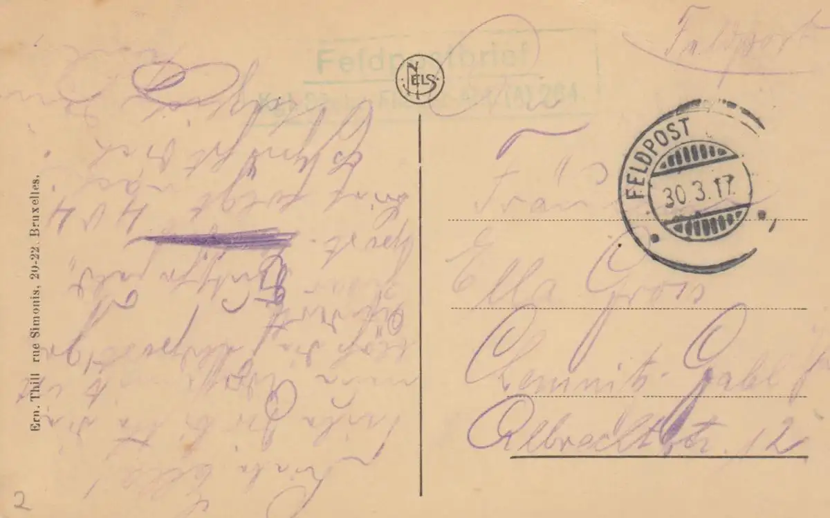3x Cartes visuelles Liège, Lille, Bruxelles comme poste de champ 1917 selon Güsten et Chemnitz