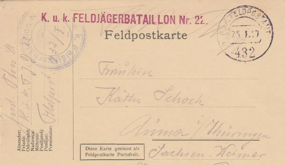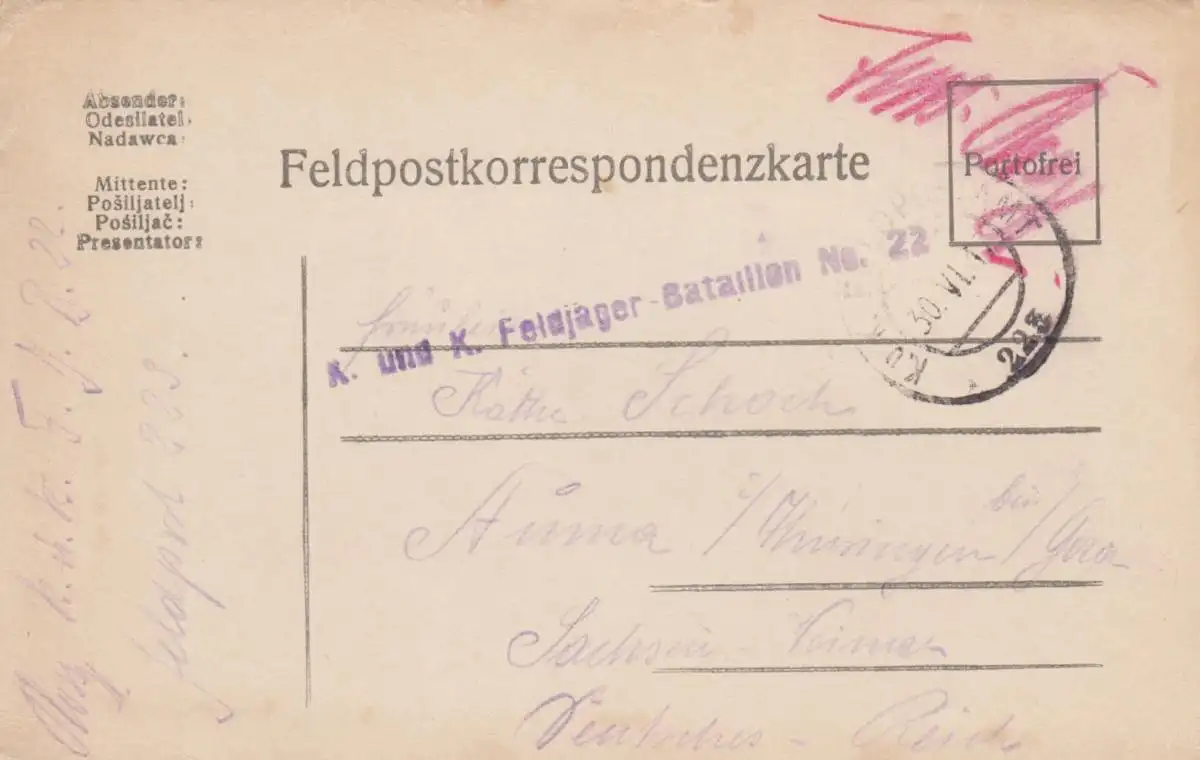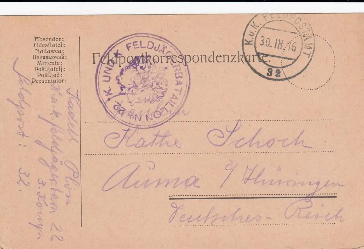 3x Carte postale des Chasseurs de Montagne, Chasseur de Champs d'Auma 1916/17