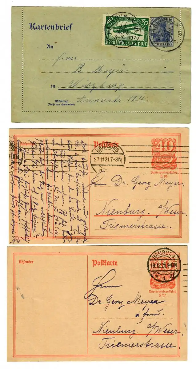 3x Affaire entière Hambourg 1921 vers Nienburg/Würzburg
