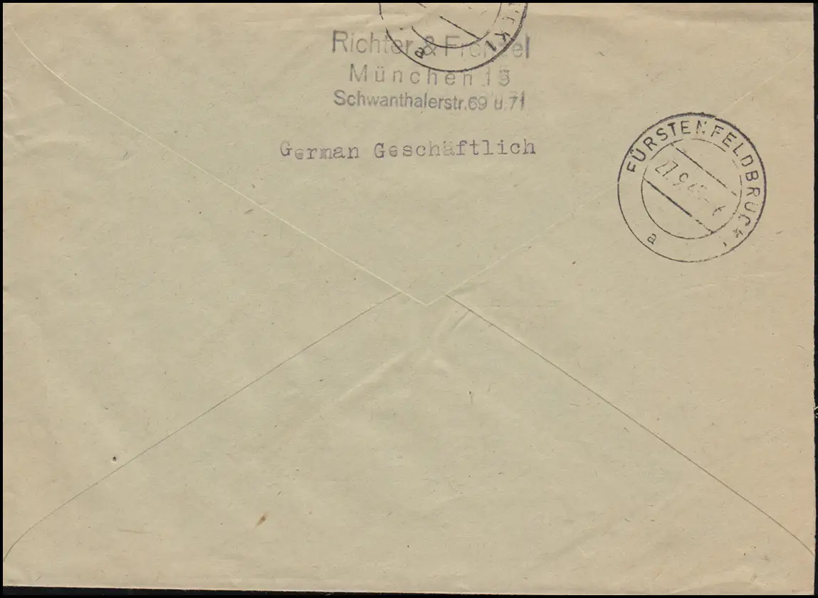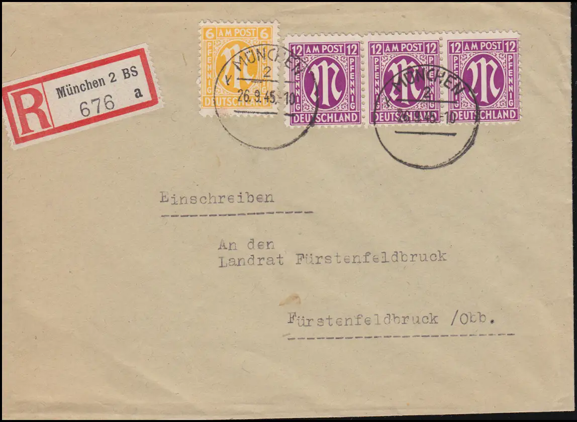 4+7 AM-Post comme MiF sur lettre R avec cachet aptisé MUNICH 2 - 26.9.45