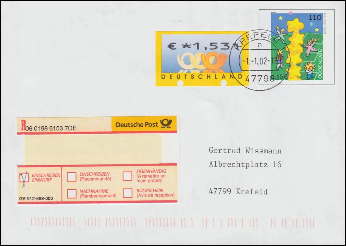 4.1 Les cornes postales 1,53 euro sur USo 19 comme cachet de première journée FDC KREFELD 1.1.02