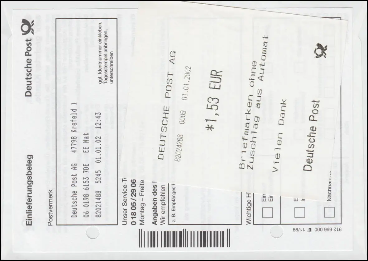 Lettre de dépôt avec la carte de marque automatique du premier jour et le bon de livraison approprié, numéro de catalogue codé: 4.1 Vérification: original Référence produit: 00000000028368