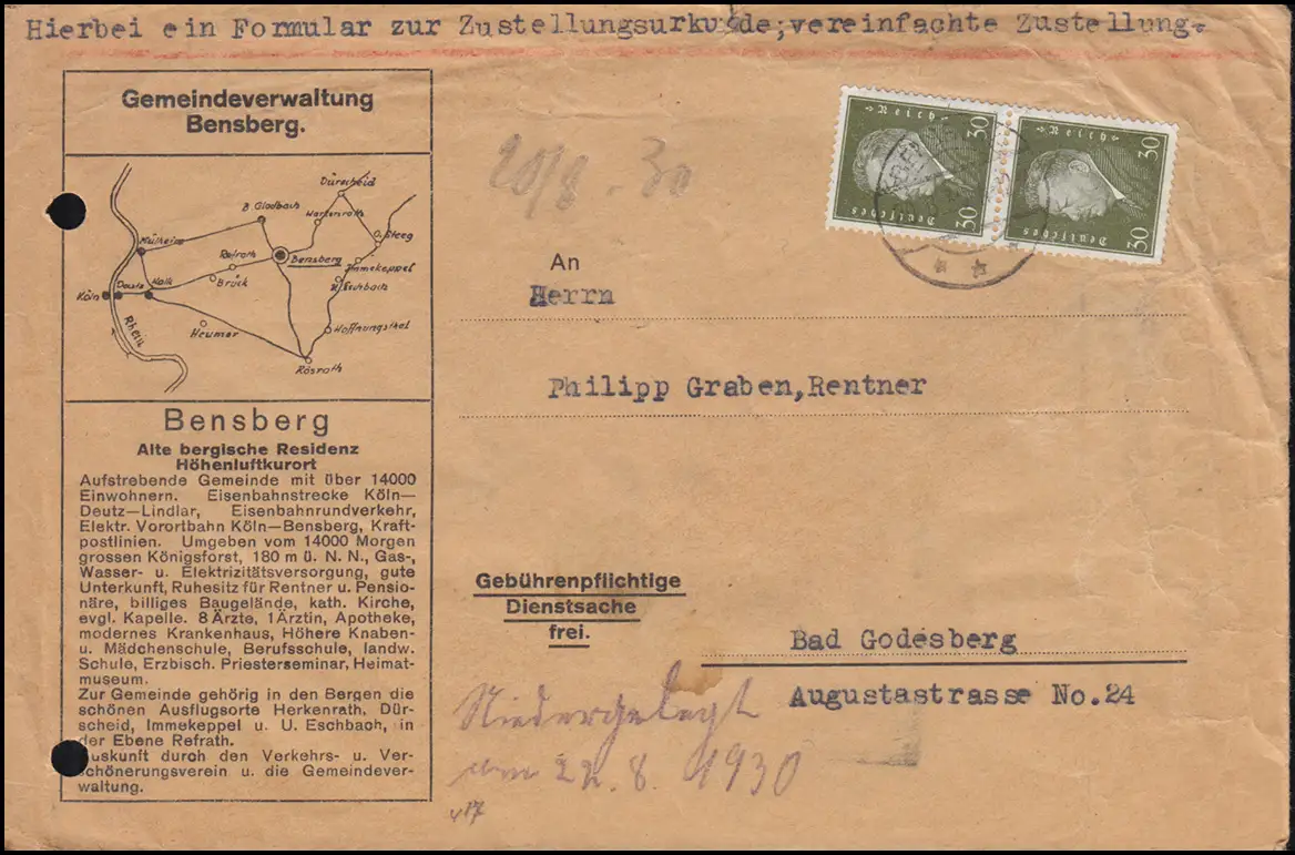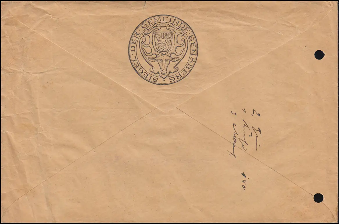 avecl "SIEGEL DER GEMEINDE BENSBERG," conservation des besoins / tissage des dossiers N° de catalogue: 417 Examen: original Référence produit: 00000000012720>p>Note: Cet article n'est disponible qu'une seule fois. Vous recevrez exactement l'article représenté.