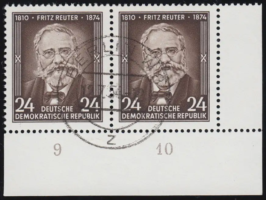 Eckrand-Paar en bas à droite avec cachet de courtoisie BERLIN 12.7.1954 (premier jour) avec le défaut de plaque MICHEL I dans la case 49: Cheveux retouché. Numéro de catalogue: 430I Vérification: BPP-relevé Référence de l'article: 00000000003973