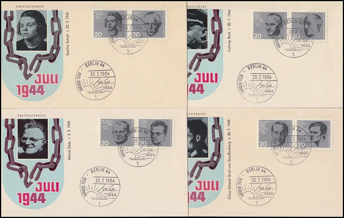 431-438 Couples de bloc 3 Attaque 20 juillet 1944 sur 4 Bijoux-FDC ESSST BERLIN
