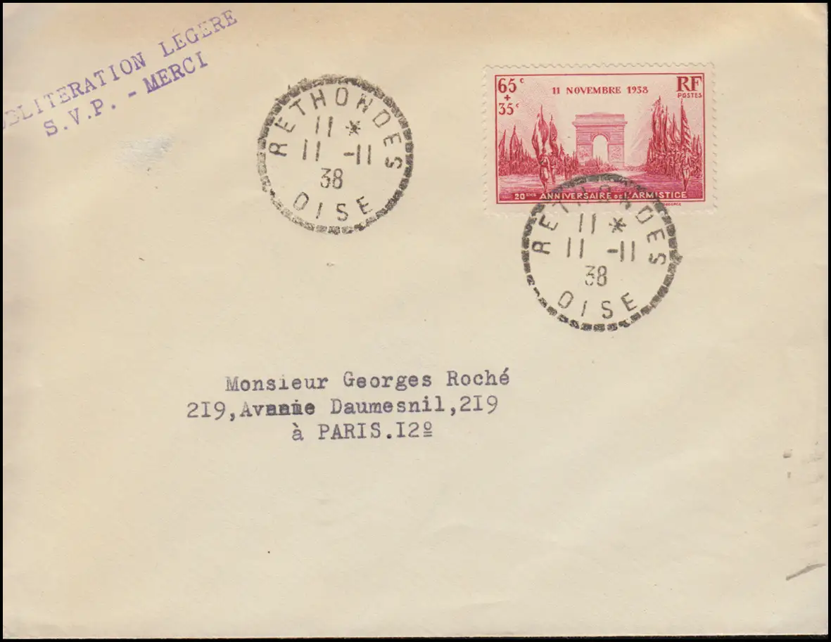 434 Accord de cessez-le-feu sur lettre RETHONDES 11.11.1938 à Paris 12.11.