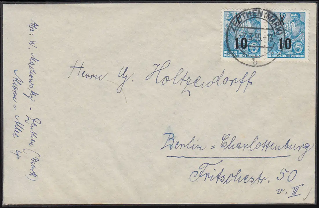 437 Impression de plan quinquennal 10 sur 12 Pf Paar MeF Lettre de deuil ZEUTHE/MARK 7.3.55
