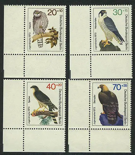 442-445 Jeunes oiseaux de proie 1973, coin et l.