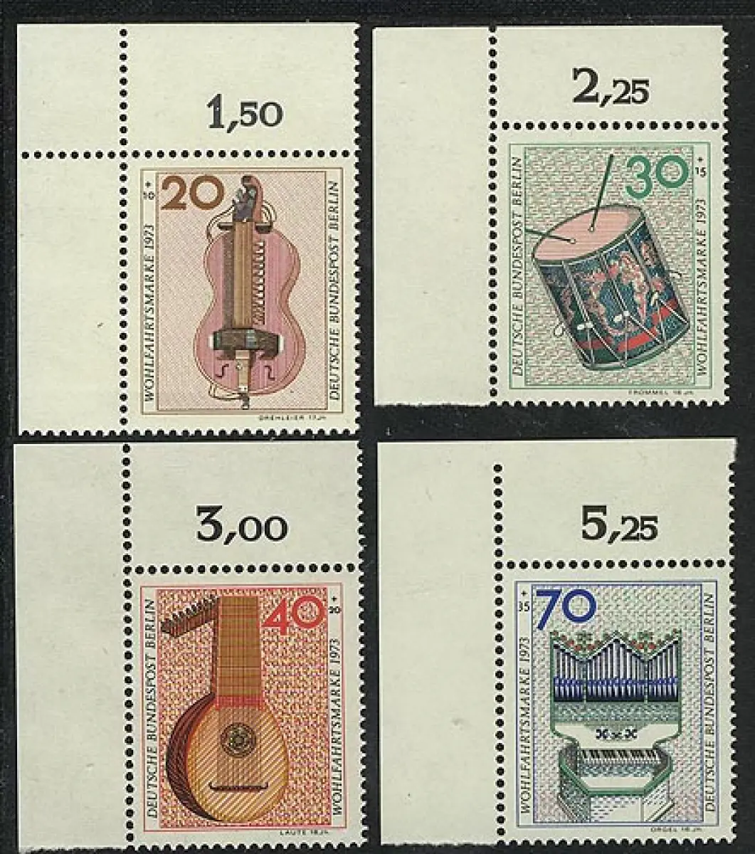 459-462 Wofa Instruments de musique 1973, coin o.l. phrase **