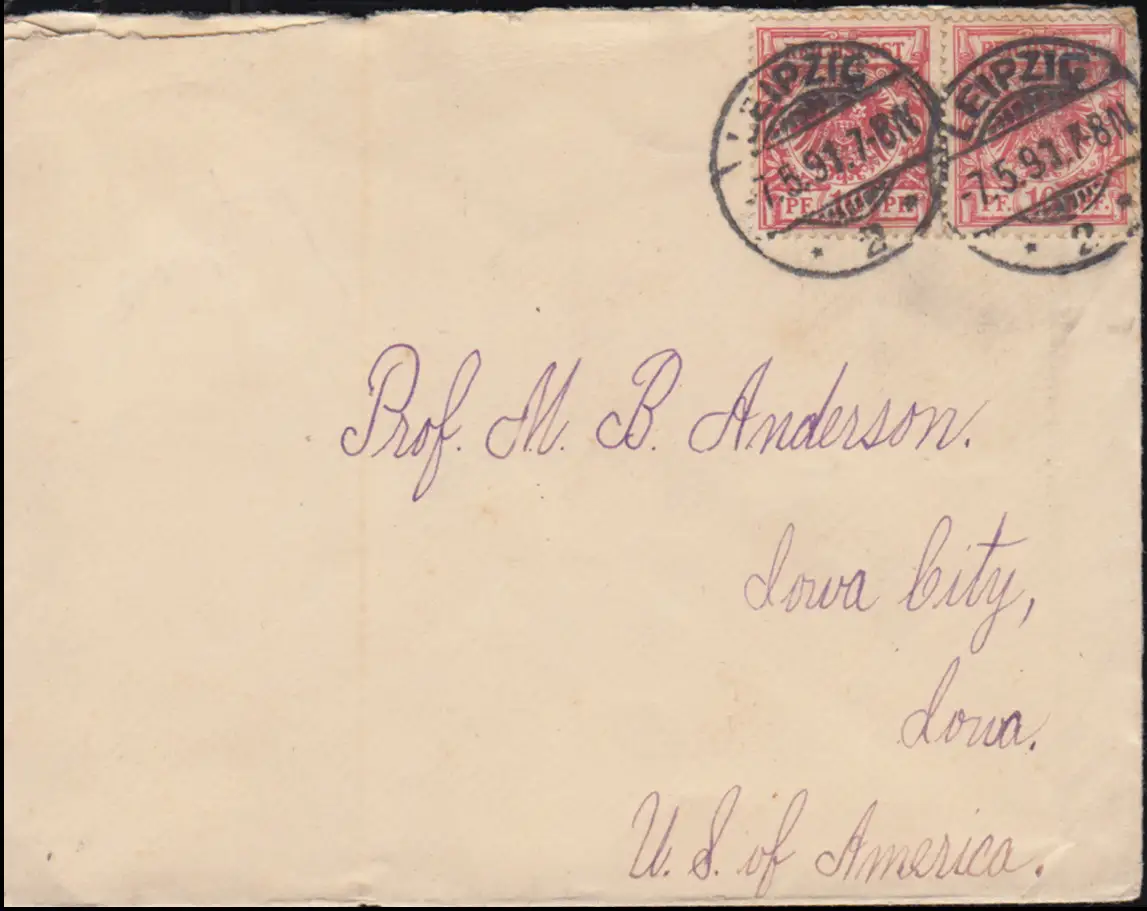 47 Adler 10 Pf. MeF sur lettre d'étranger des États-Unis LEIPZIG 7.5.91 vers IOWA CITY 18.5.91