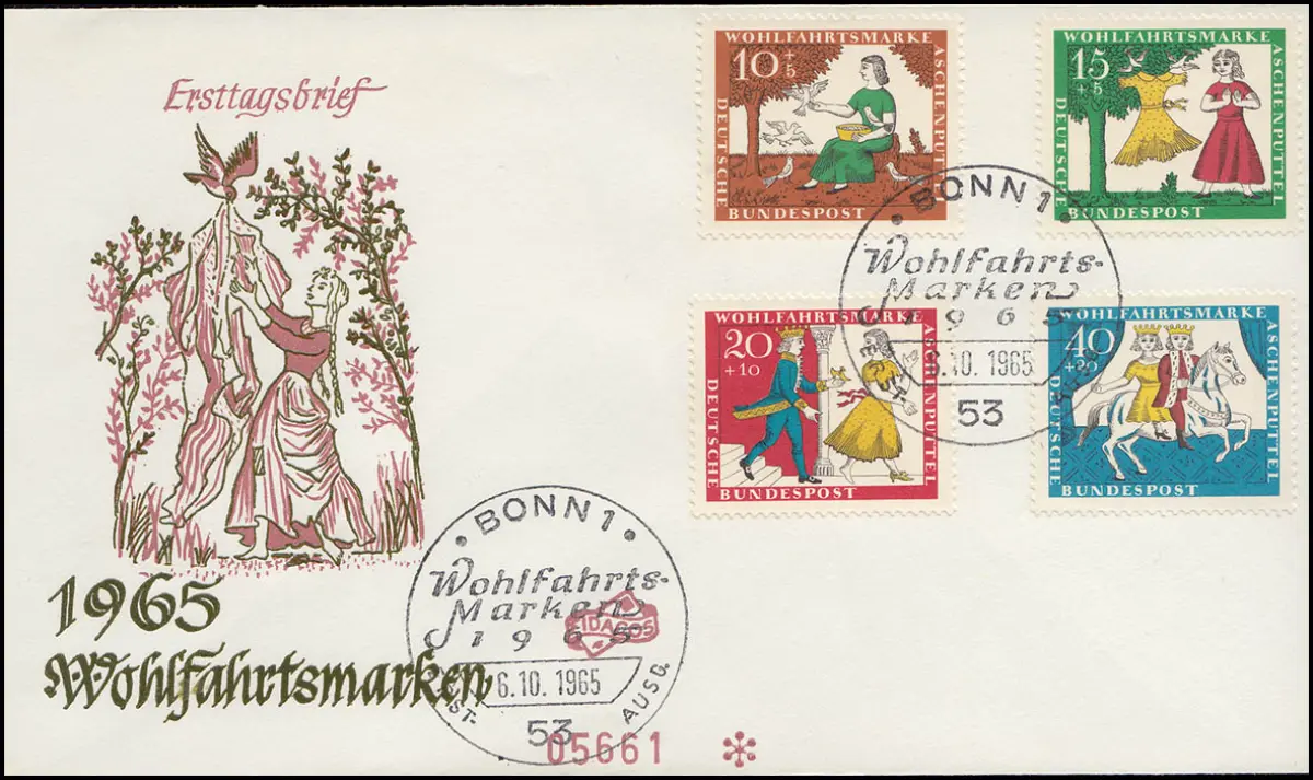485-488 Wofa 1965 Märchen Aschenputtel - Satz auf Fidacos Schmuck-FDC ESSt BONN