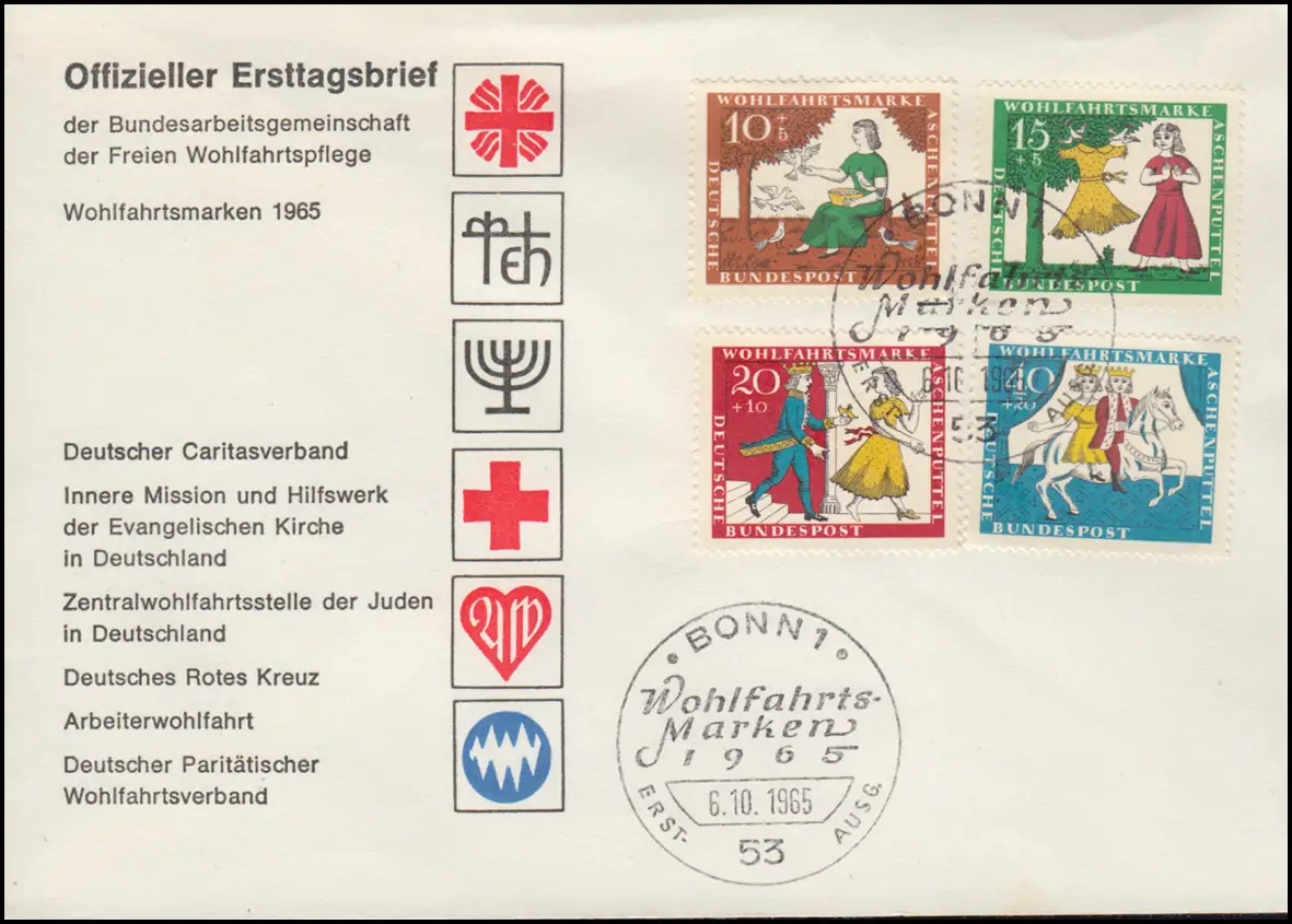 485-488 Wofa contes de fées Cendrillon 1965: ensemble sur le FDC BONN 6.10.65