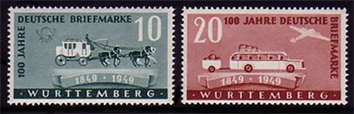 49-50 Wurtemberg 100 ans de timbres allemands 1949, phrase **