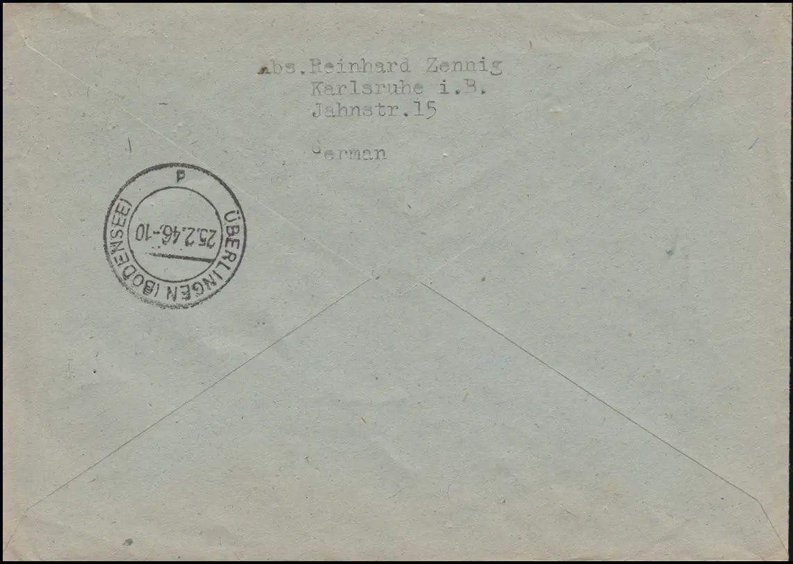 5+6 AM-Post MiF sur lettre R de Karlsruhe (BADE) 23.2.1946 après AURLINGEN 25.2.