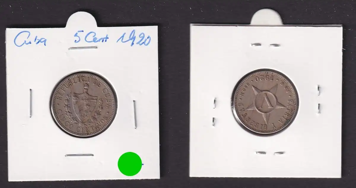 5 Cents Kupfer Nickel Münze Kuba Cuba 1920 ss (172100)