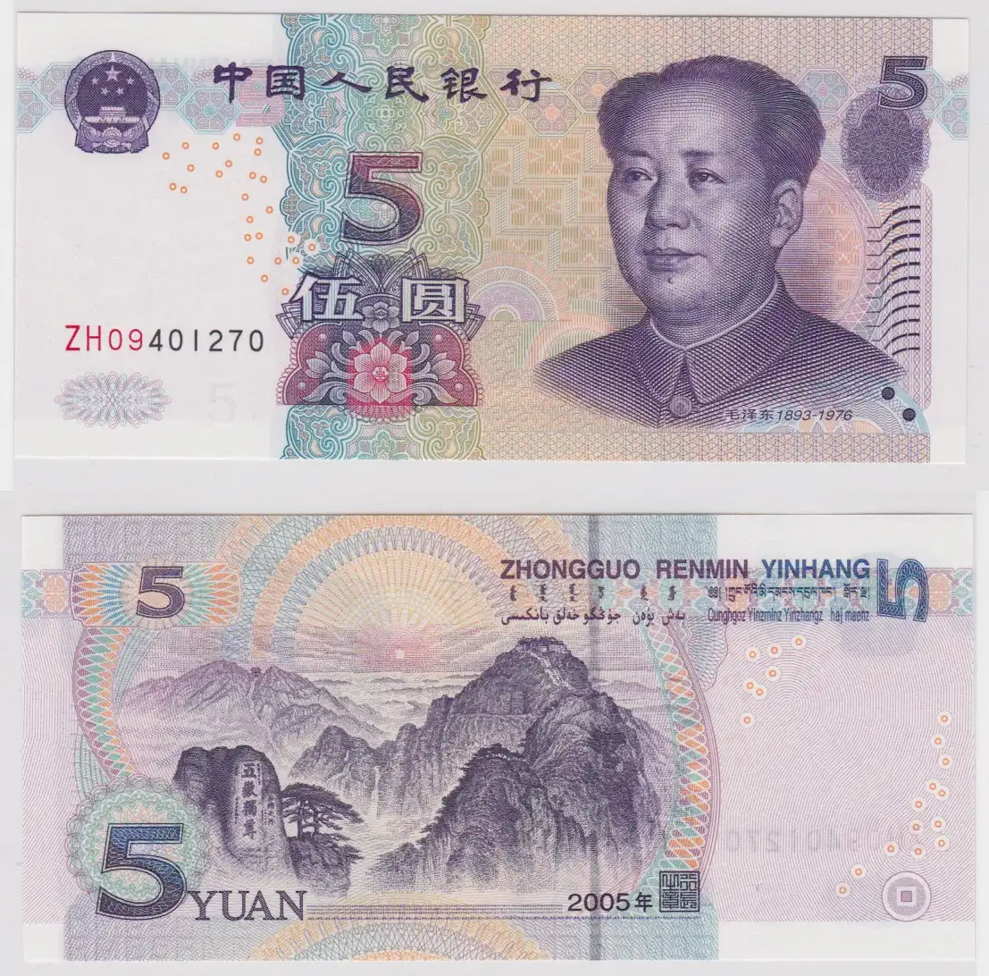 5 Yuan Banknote Bank of China 2005 Pick 903 (159066)