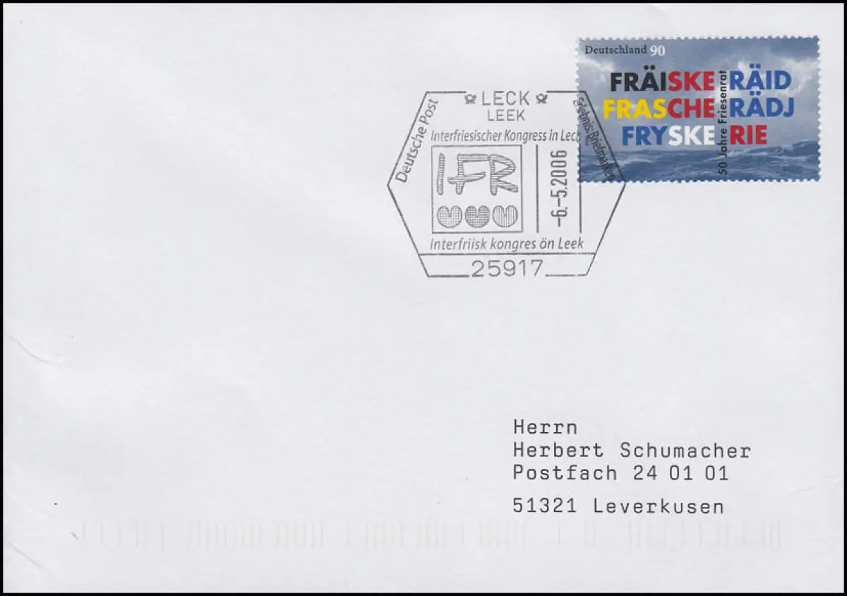 50 Jahre Friesenrat, Brief SSt Leck/Leek Interfriesischer Kongress 6.5.2006