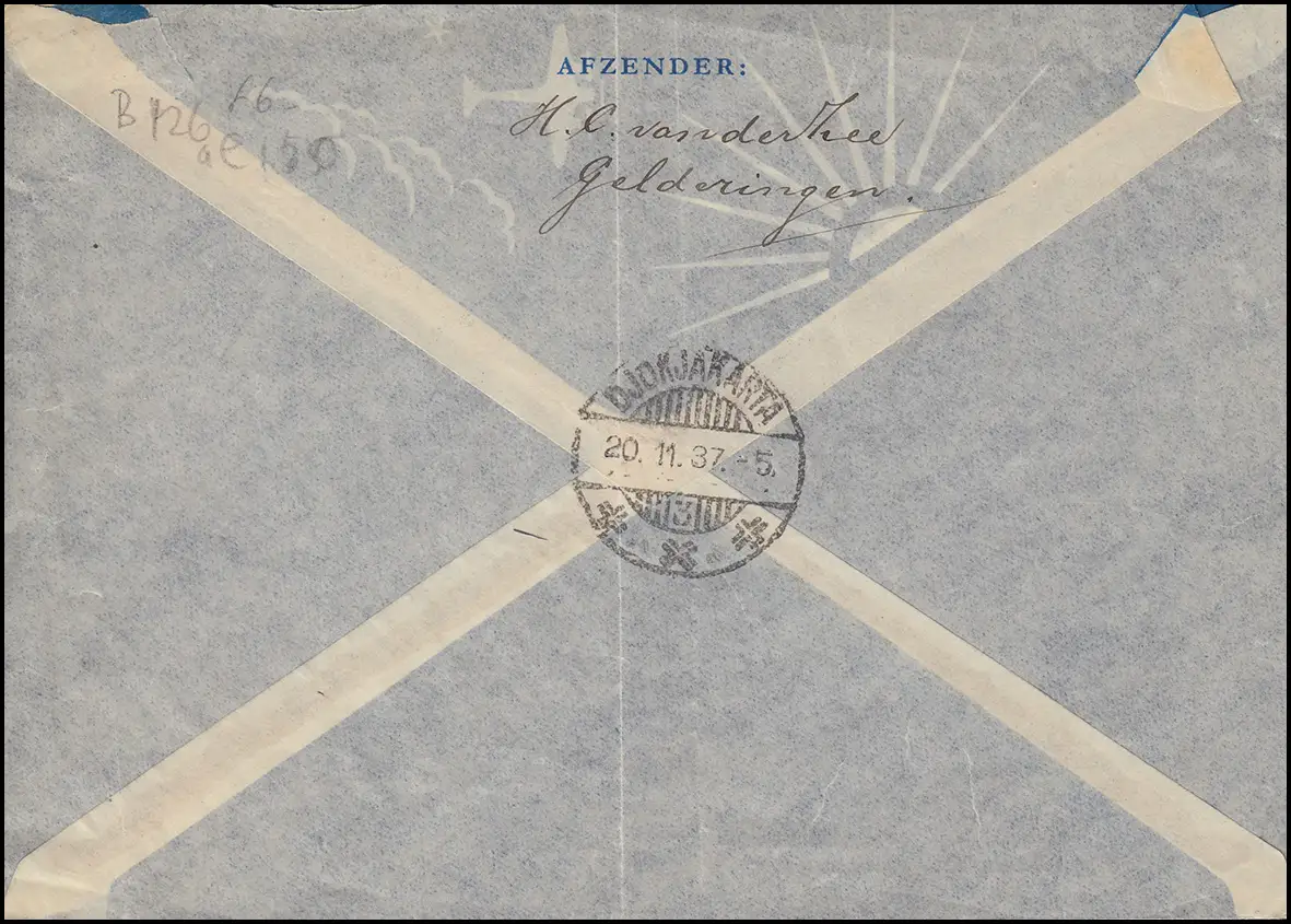 Tampon de Bore violet, avec le cachet d'arrivée DJOKJAKARTA 20.11.37, enveloppe du milieu de bug Contrôle: original Numéro d 'article: 00000000034858
