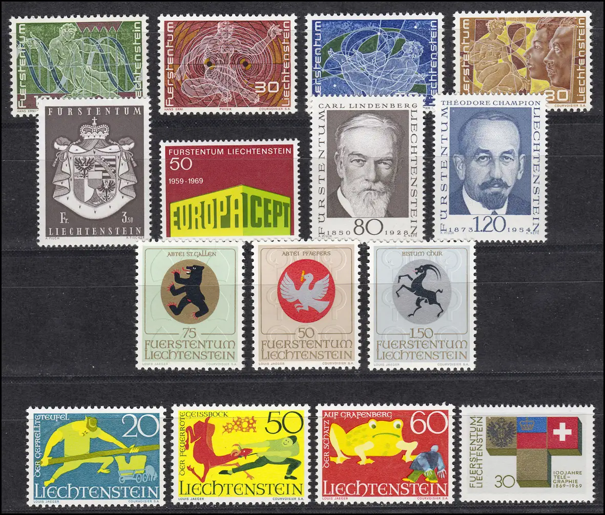 506-520 Liechtenstein millésime 1969 complet, frais de port