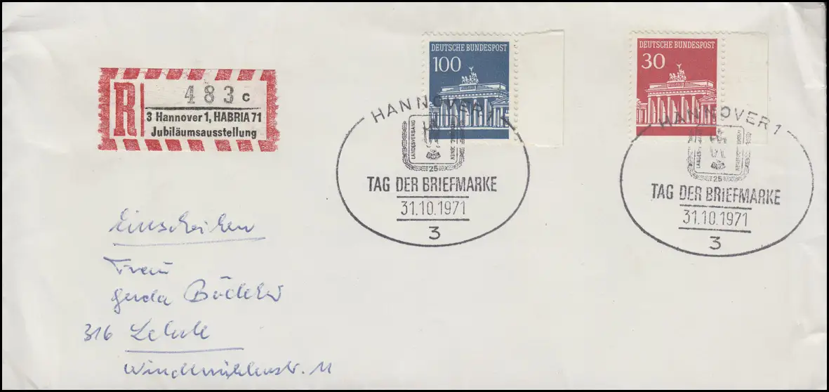 508+510 Brand. Porte avec bord R-Zettel spécial HABRIA 71 SSt HANNOVER 31.10.1971