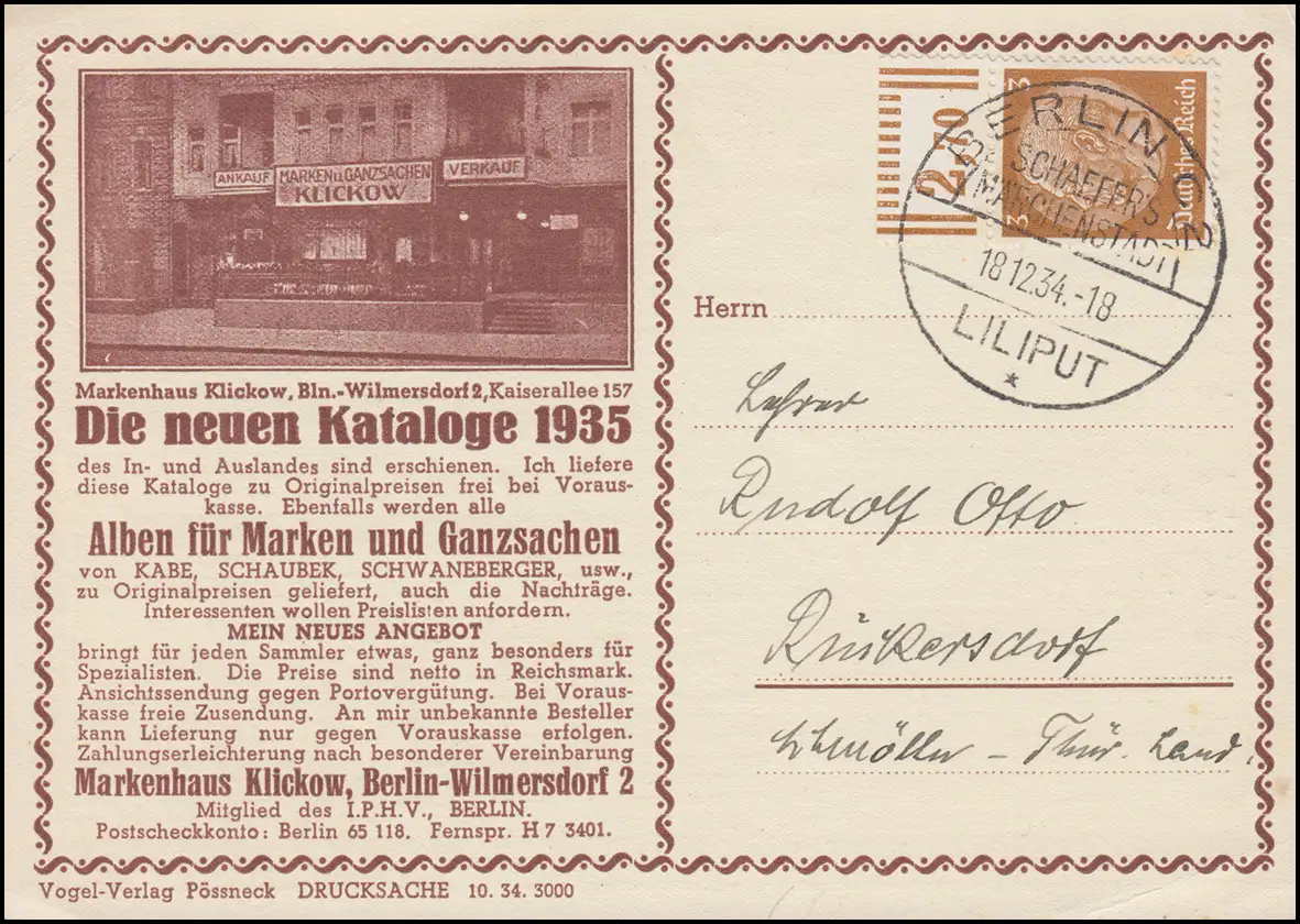 Tampon spécial BERLIN C 2 - Schäfers Firchenstadt Liliput, transporté à Refernersdorf, expéditeur Markenhaus Klickow Numéro de catalogue: 513XWOR Test: original Référence produit: 00000000035796>Note: Cet article n'est disponible qu'une seule fois. Vous recevrez exactement l'article représenté.