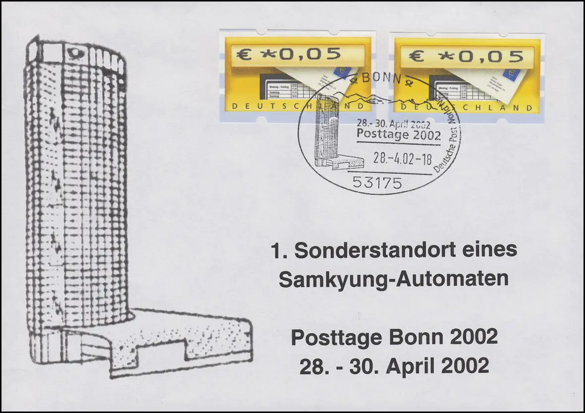 5.2 ATM 5+5 Pf Lettre 1. Site spécial d'un distributeur Samkyung BONN 28.4.2002