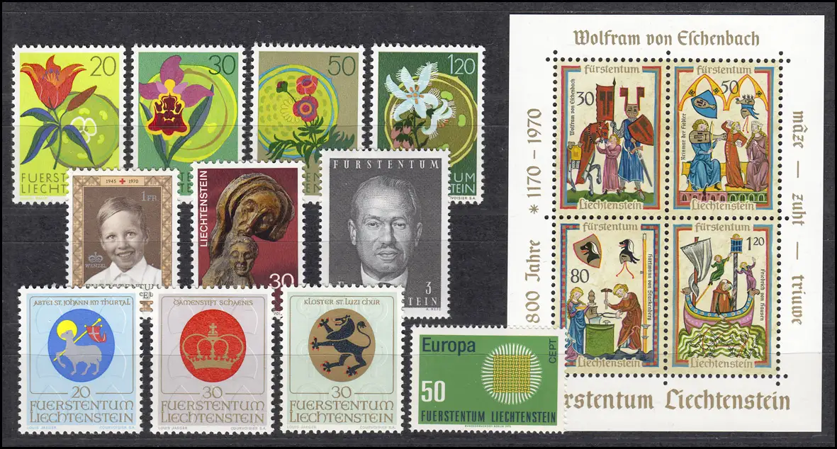 524-535 Liechtenstein millésime 1970 complet, frais de port