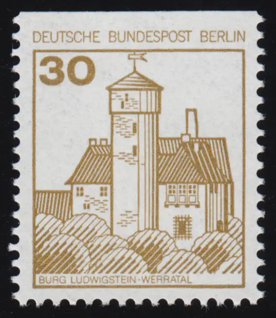 534C Châteaux et château 30 Pf Ludwigstein, nouvelle fluorescence, **