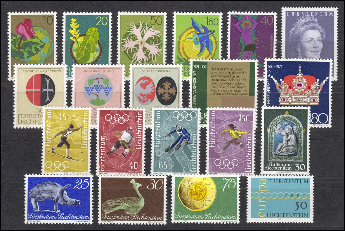 536-555 Liechtenstein millésime 1971 complet, frais de port