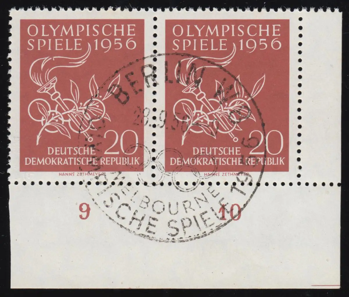 539I Olympia: Eckrand-Paar PLF I Flamme cassée en haut, Essent Berlin BPP-testé