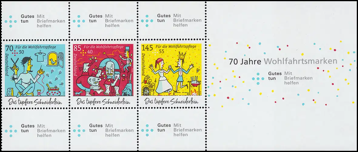 70 ans de marques sociales 2019 avec 3438-3440 Le courageux Schneiderlein Numéro de catalogue: HBl54 Examen: original Référence produit: 50063005401100