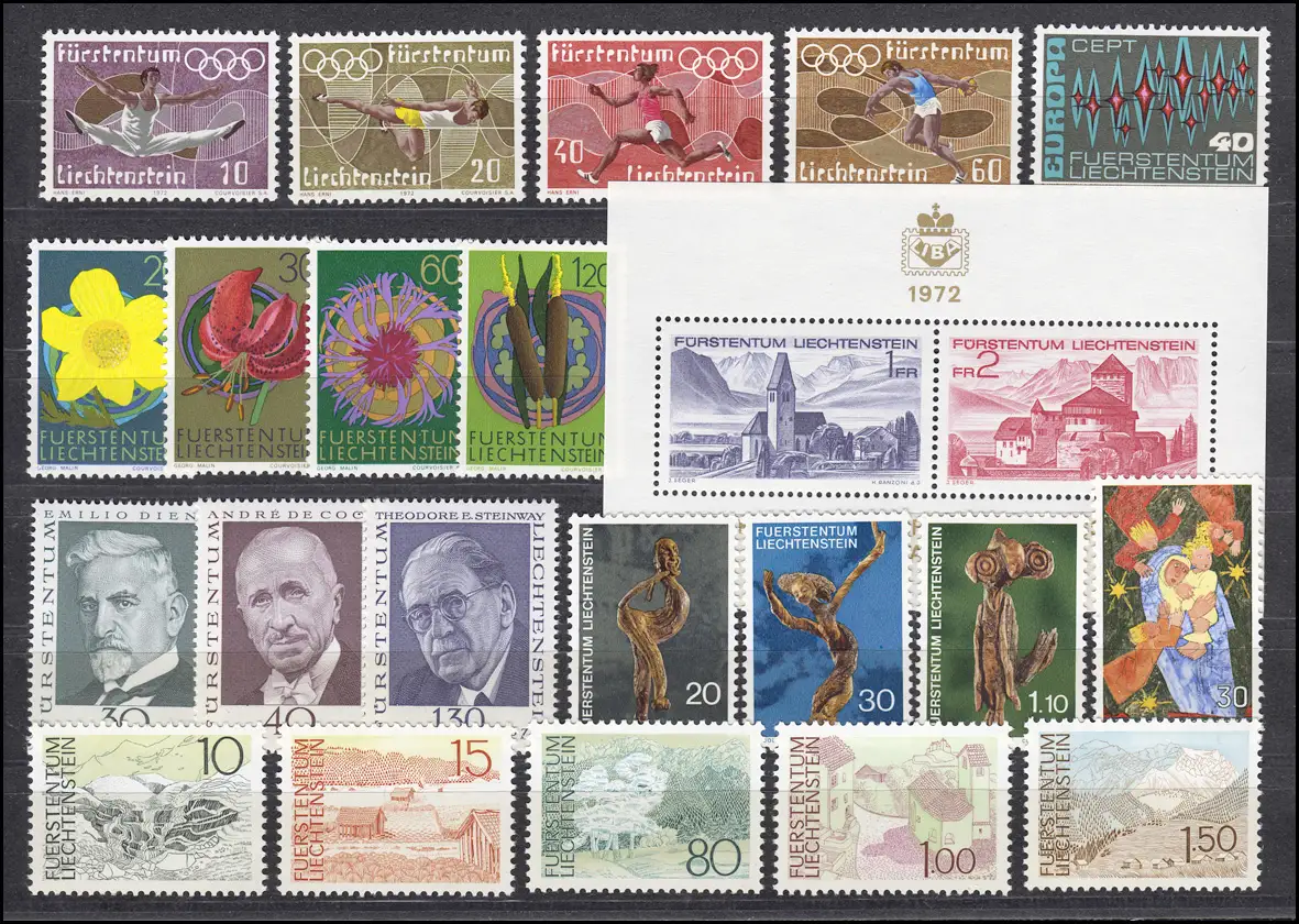 556-578 Liechtenstein millésime 1972 complet, frais de port