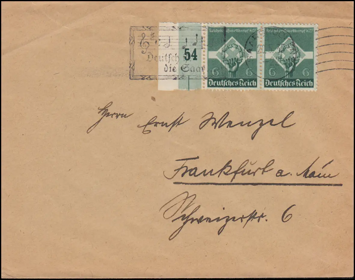 571 Concours de renom couple Randar avec barre de couleur MeF Lettre SAARBRÜCK 20.5.35