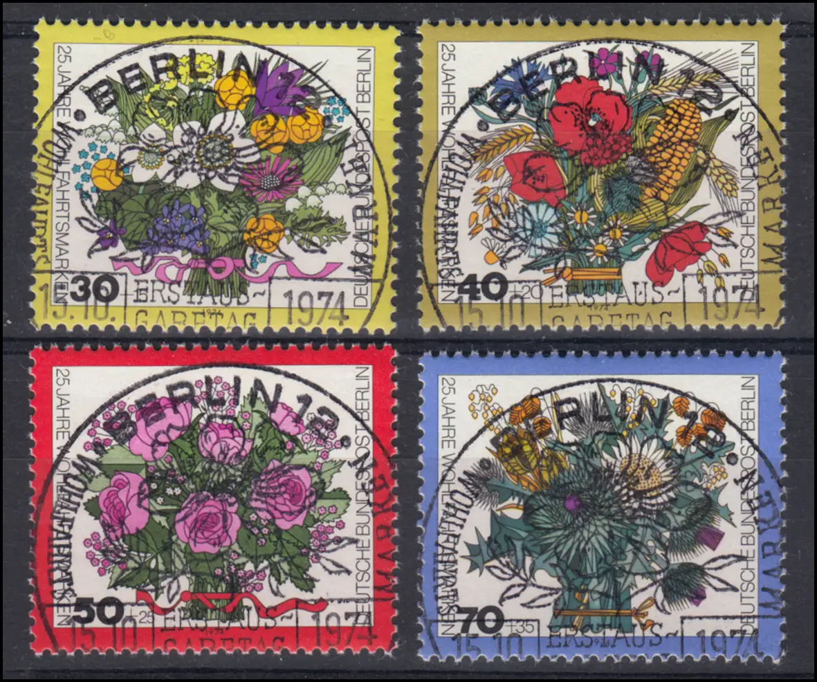 573-576 Wofa bouquets de fleurs 1974 - Série avec cachet complet ESSENT BERLIN