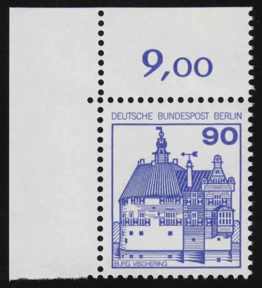 588 châteaux et schl. 90 Pf coin ol ** post-fraîchissement
