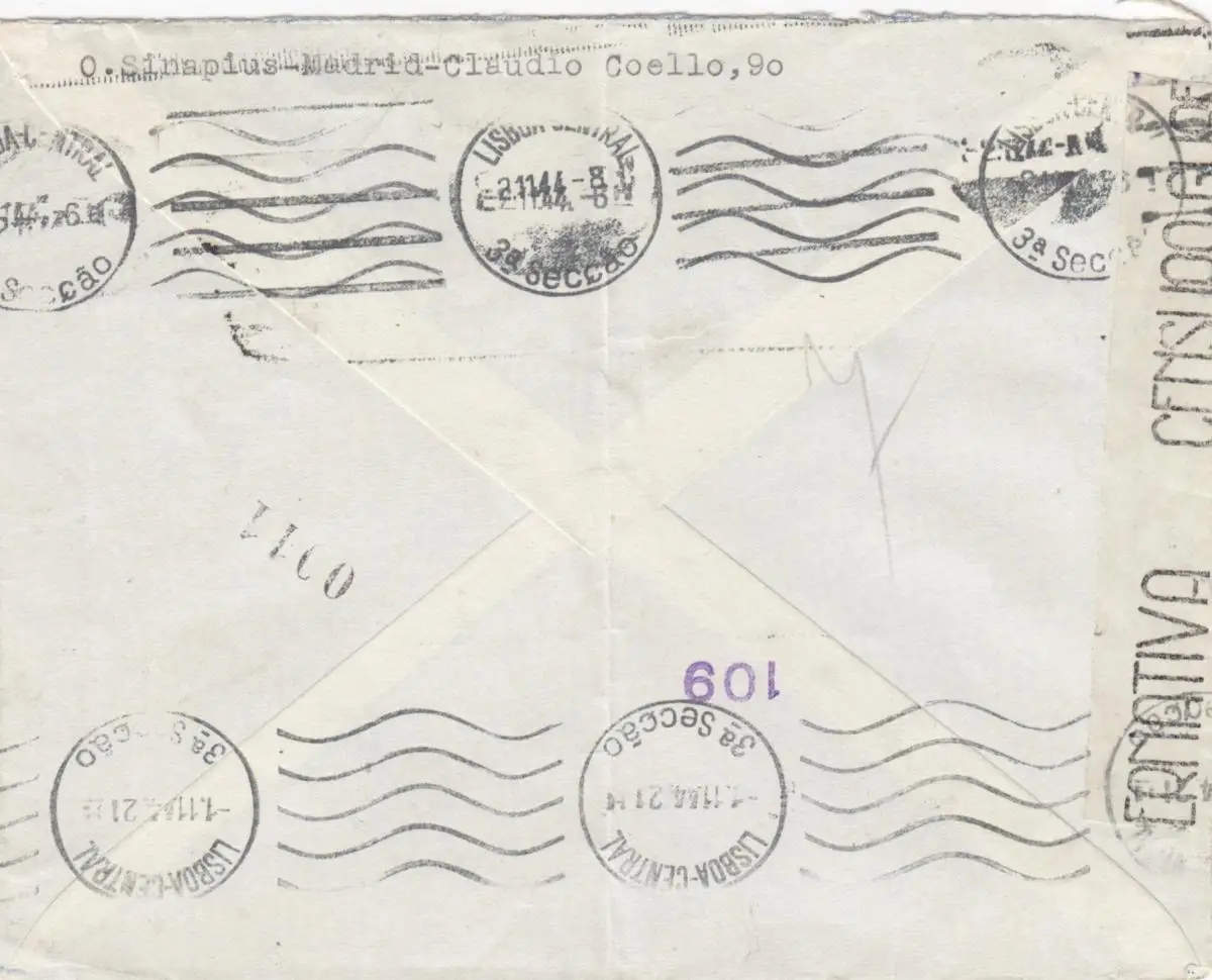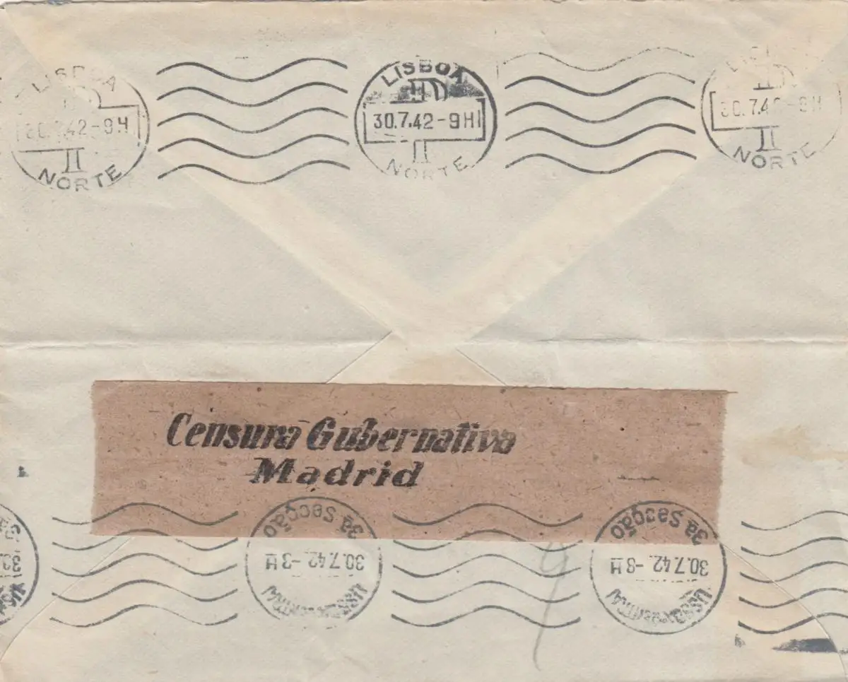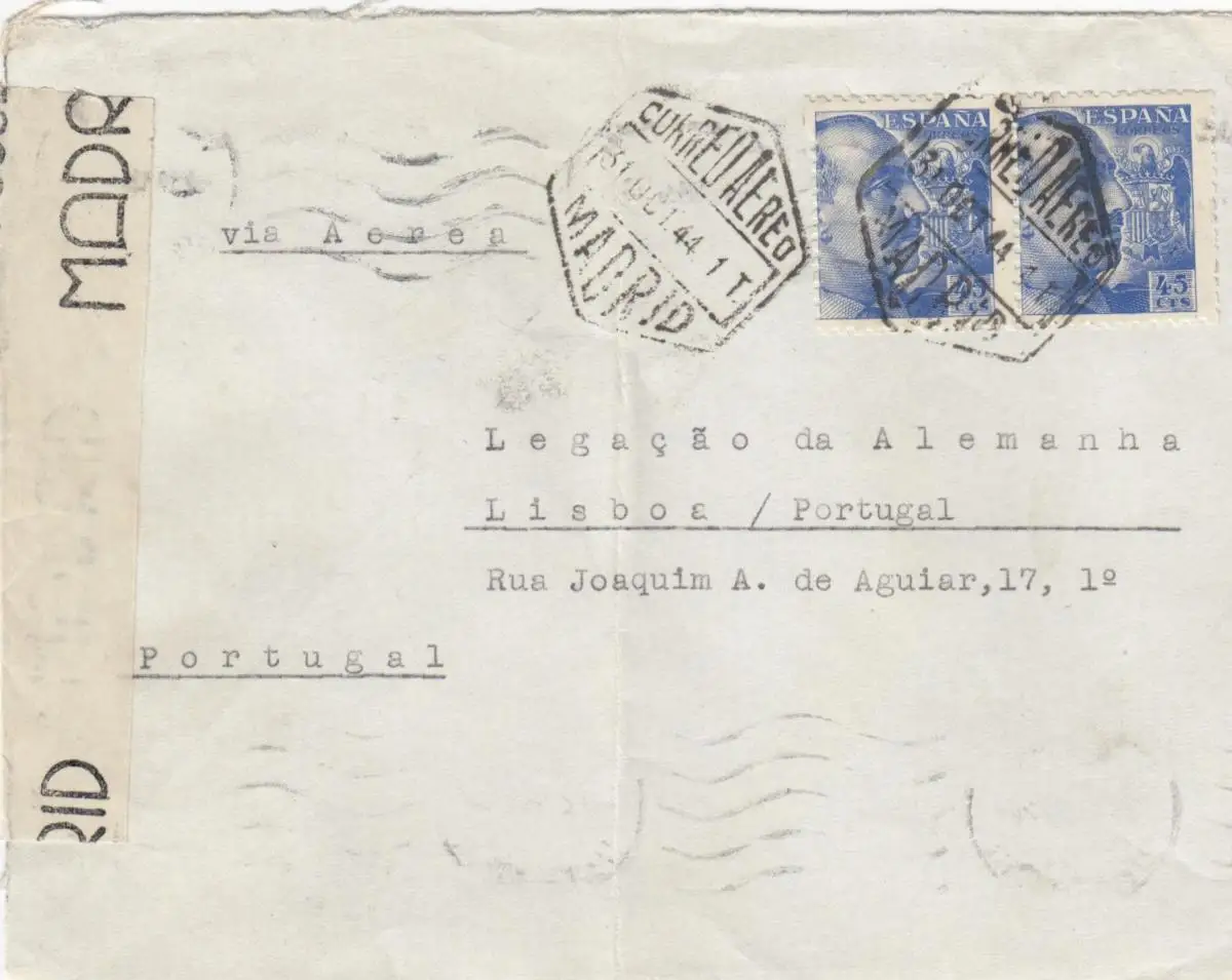 5x lettre: 1942/44: Madrid to Deutsches Message in Lisboa, centorship