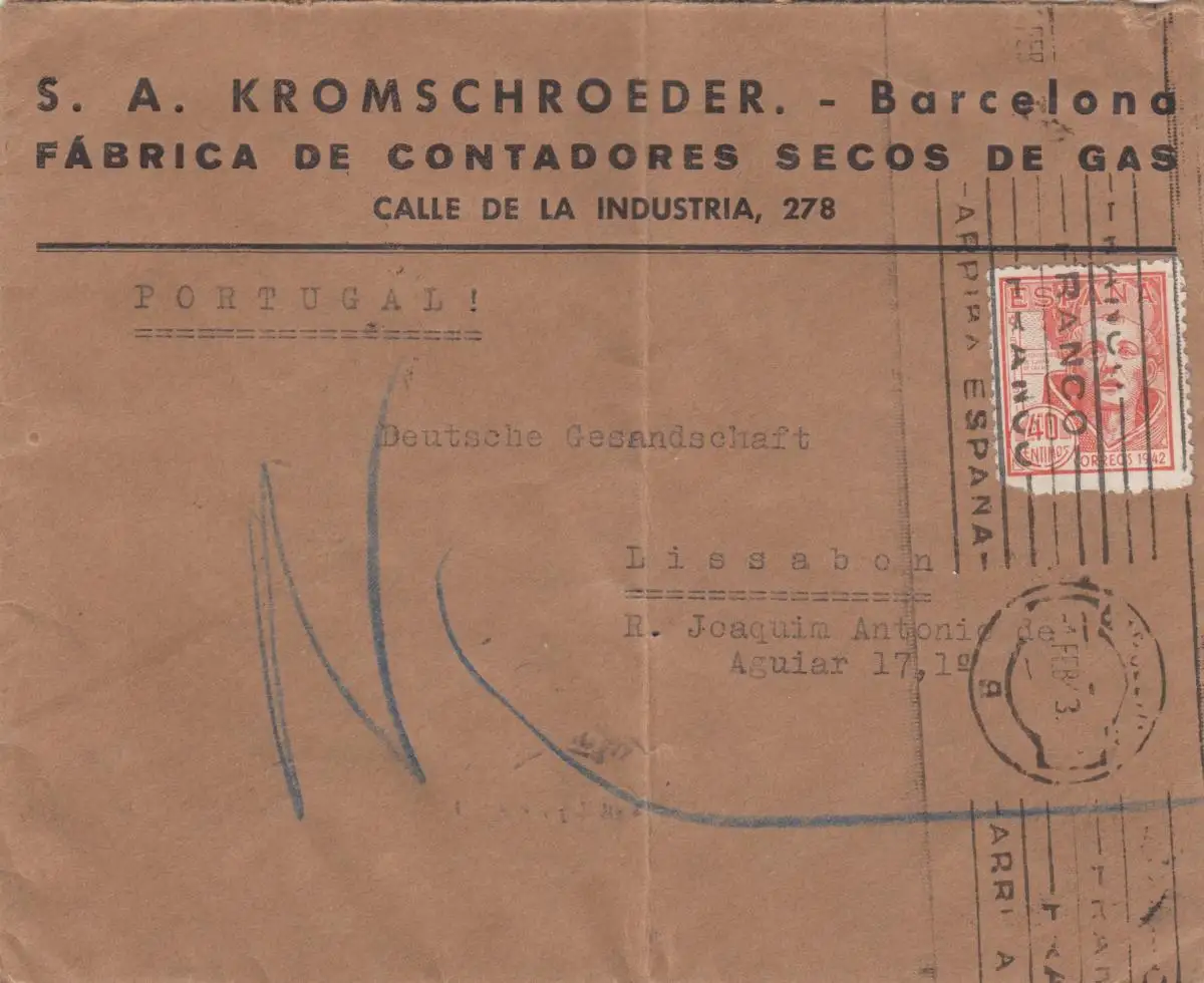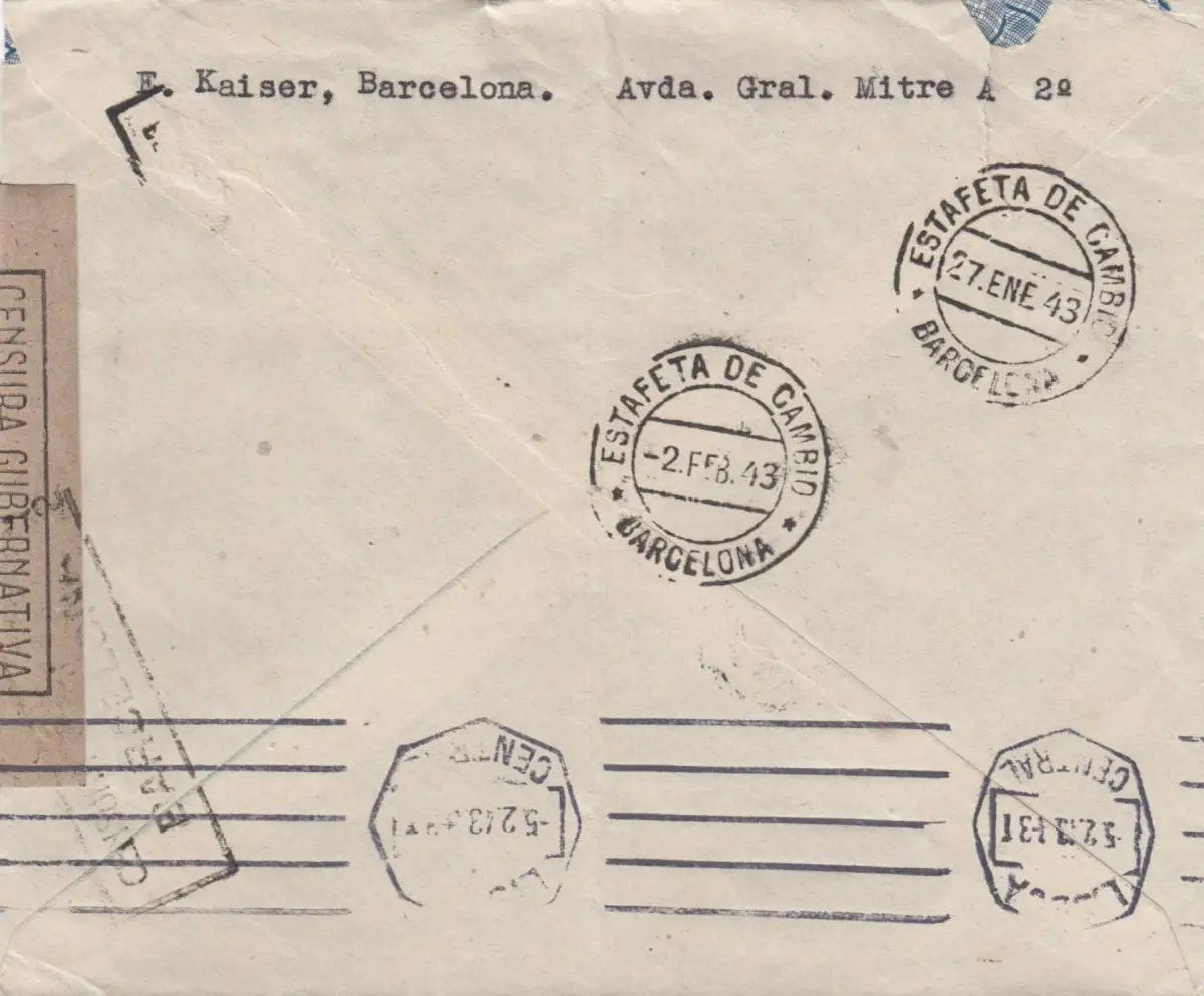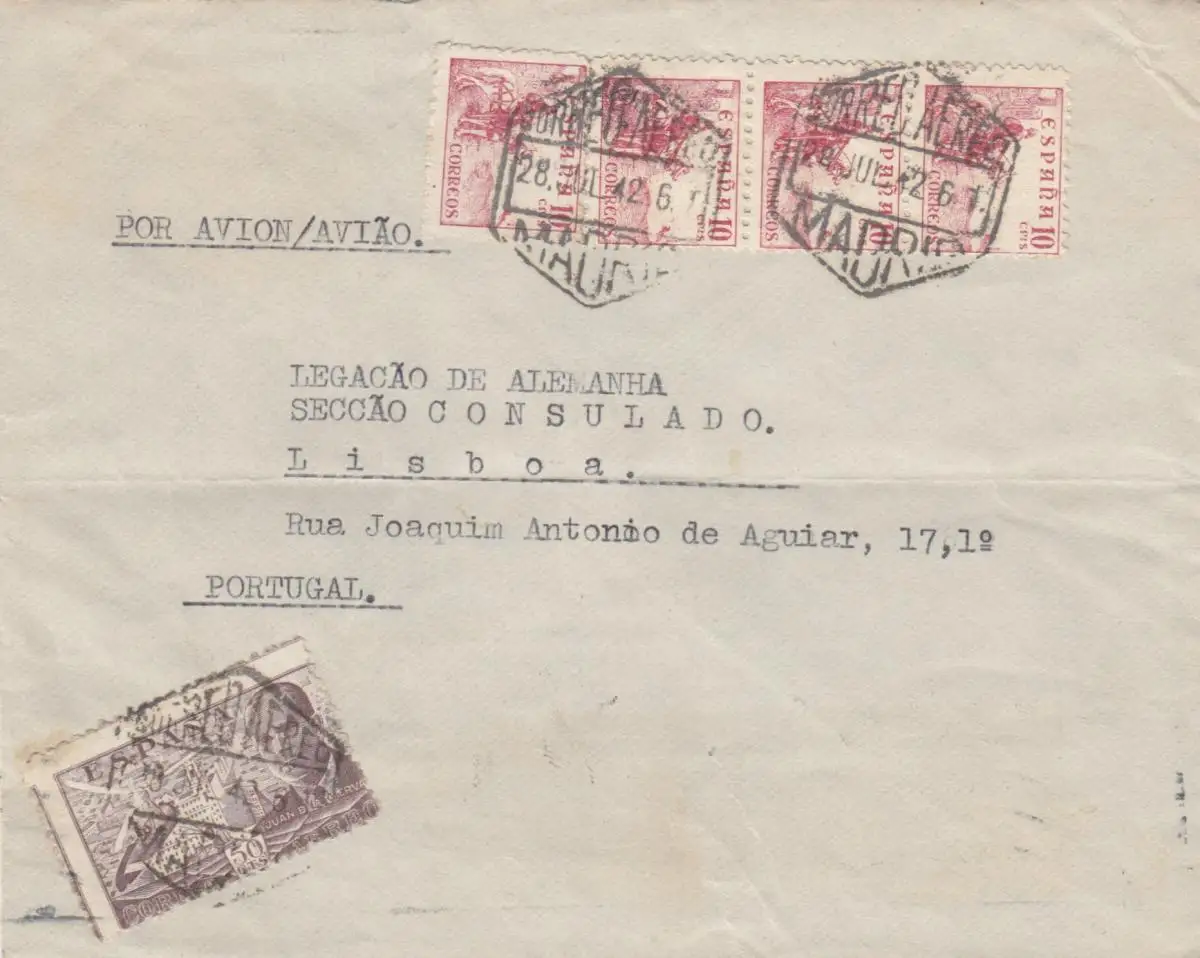5x lettre: 1942/44: Madrid to Deutsches Message in Lisboa, centorship
