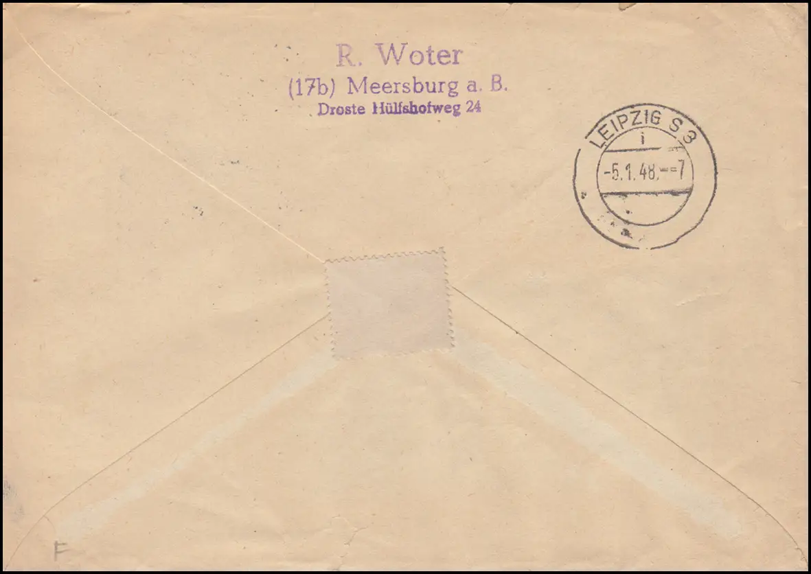 Envoi recommandé à la SBZ, cachet d'arrivée LEIPZIG 5.1.48. Numéro de catalogue: 6+10 Vérification: original Référence produit: 00000000021058>P>Remarque: Cet article n'est disponible qu'une seule fois. Vous recevrez exactement l'article représenté.