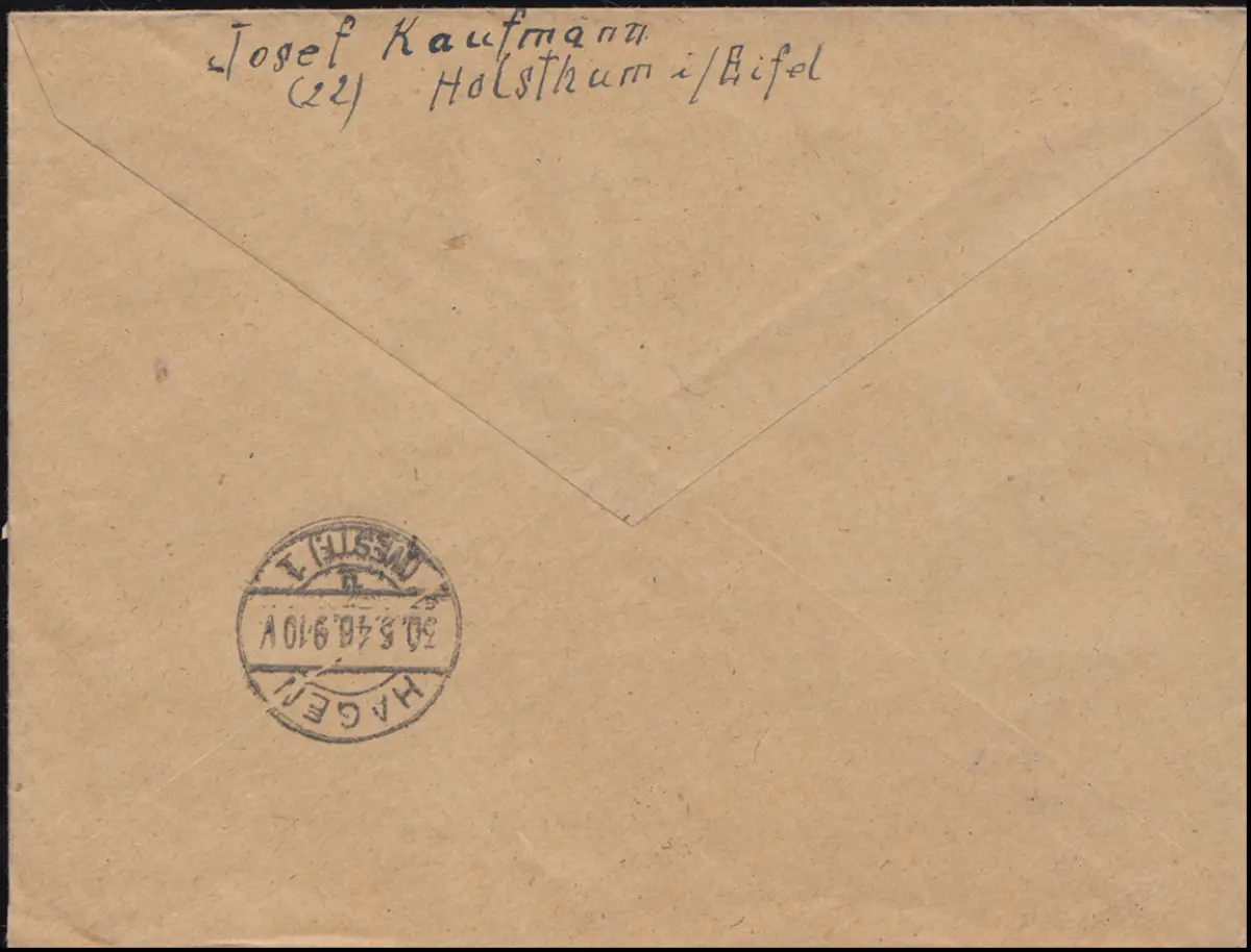 Modification manuscrite du numéro R "Bitburg (Bz. Trèves) Land" à Hülsthum. Envoi recommandé à l'entreprise horticole Wolff in Hagen, Tampon d'arrivée HAGEN (WESTF.) 30.5.46 Numéro de catalogue: 6+8 Vérification: original Numéro d ' article: 00000000026142>p>Remarque: Cet article n'est disponible qu'une seule fois. Vous recevrez exactement l .