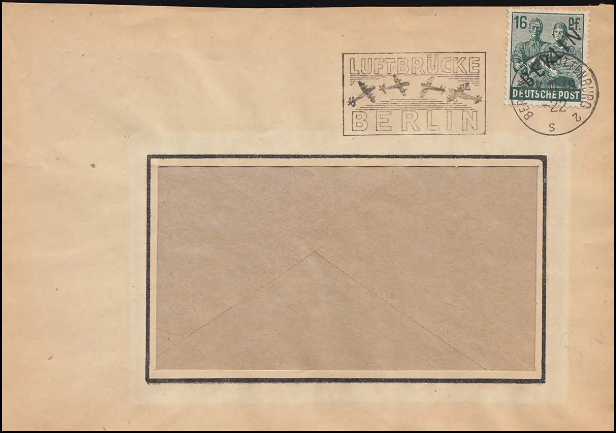 6 Schwarzaufdruck 16 Pf. portogerechte EF BERLIN Luftbrücke Okt. 1948