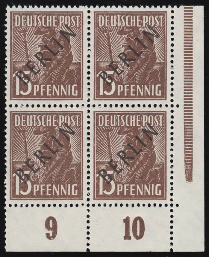 Bloc de quatre d'angle en bas à droite, non plié, avec erreur d ' impression I: L avec apostrophe, case 100 Numéro de catalogue: 6AFI Vérification: original Référence produit: 00000000005925>p>Note: Cet article n' est disponible qu' une seule fois. Vous recevrez exactement l' article représenté.