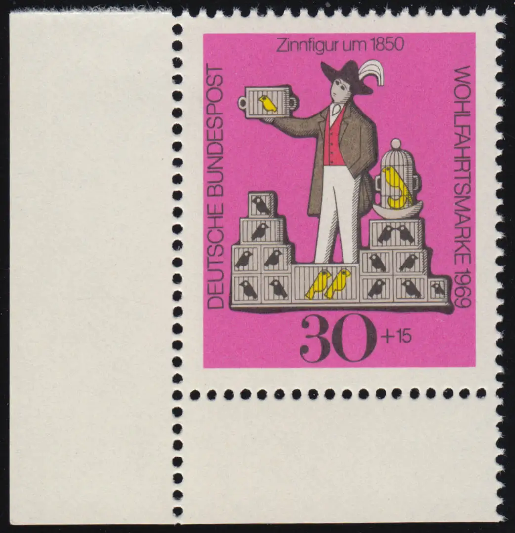606 Sauvage figures en étain 30+15 Pf Marchands d'oiseaux ** coin et l.
