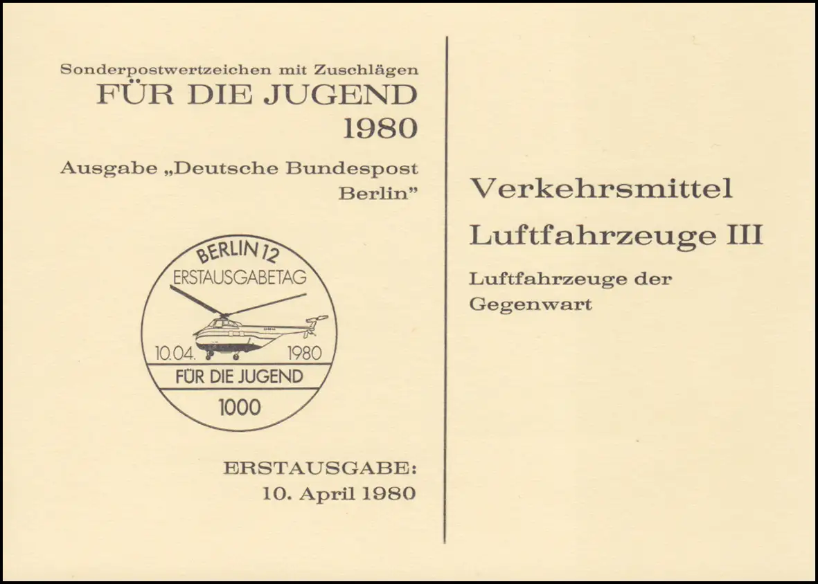 Carte pliante officielle de la fondation Deutsche Jungehilfe e.V. - Aéroports de transport Aéronefs à réaction Hubschauber Numéro de catalogue: 617-620 Examen: original Référence produit: 48000061700800>Attention: Cet article est ou a été présenté plusieurs fois. L'illustration montre un de ces articles en un exemplaire. La marque fournie a uniquement les caractéristiques indiquées dans la description et peut donc différer de l'image. Toutefois, en particulier pour les marques tachées, nous nous efforçons de fournir l ' article illustré. Si cela vous convient, veuillez nous le faire savoir.