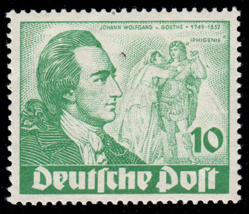 61I Goethe 10 Pf - tache à côté du bras en haut à droite, frais de port ** vérifié BPP